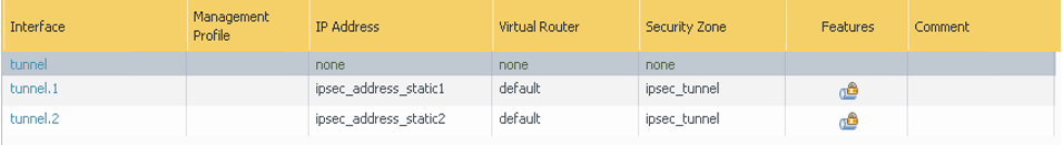 On the Config tab, assign the interface according to the virtual router and security zone configuration. In this example, the default virtual router and ipsec_tunnel security zone are used.