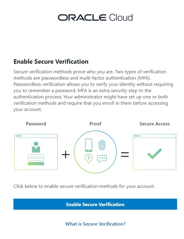 Click Enable Secure Verification, and follow the instructions in Using the Oracle Mobile Authenticator App.